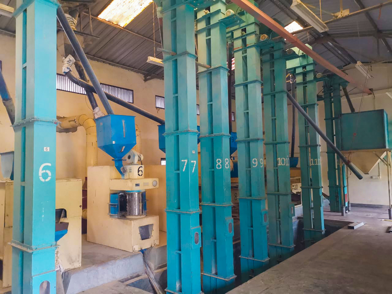 The mill has the capacity to process 15,000 kilograms of paddy per day. The main objective of the establishment is to produce rice